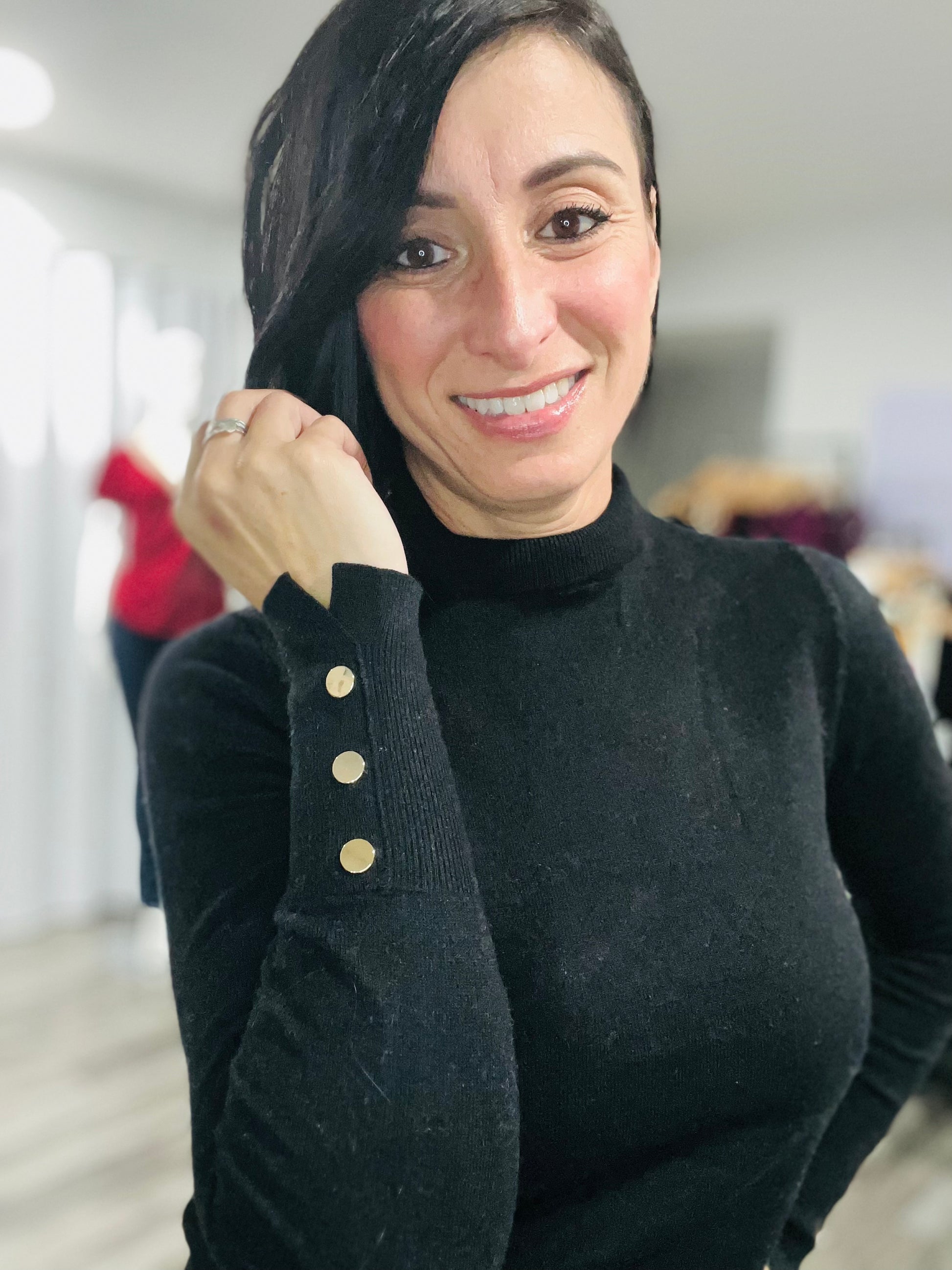 Lightweight classic long sleeve top is the perfect staple piece with an accent of gold buttons on the sleeves.