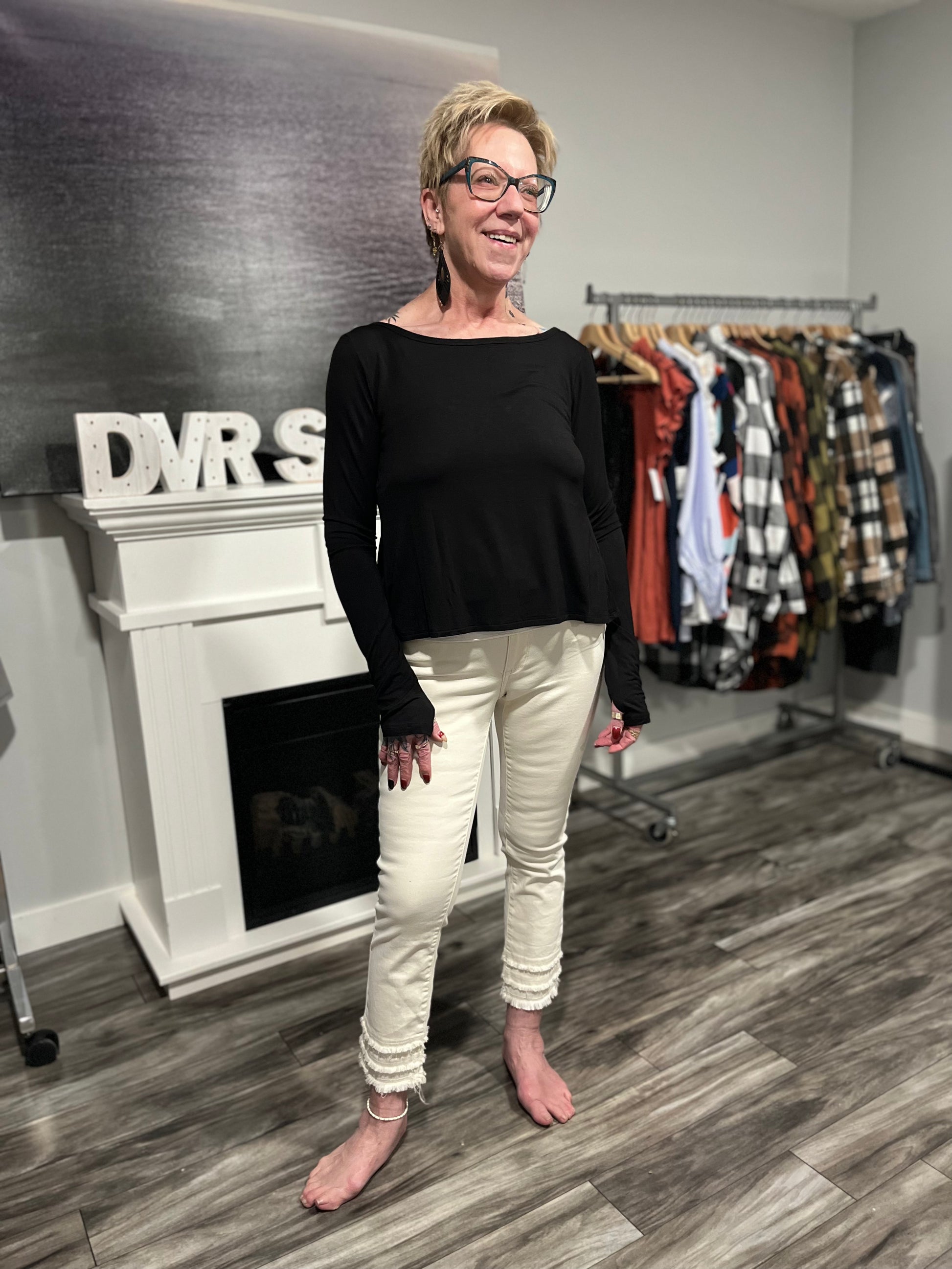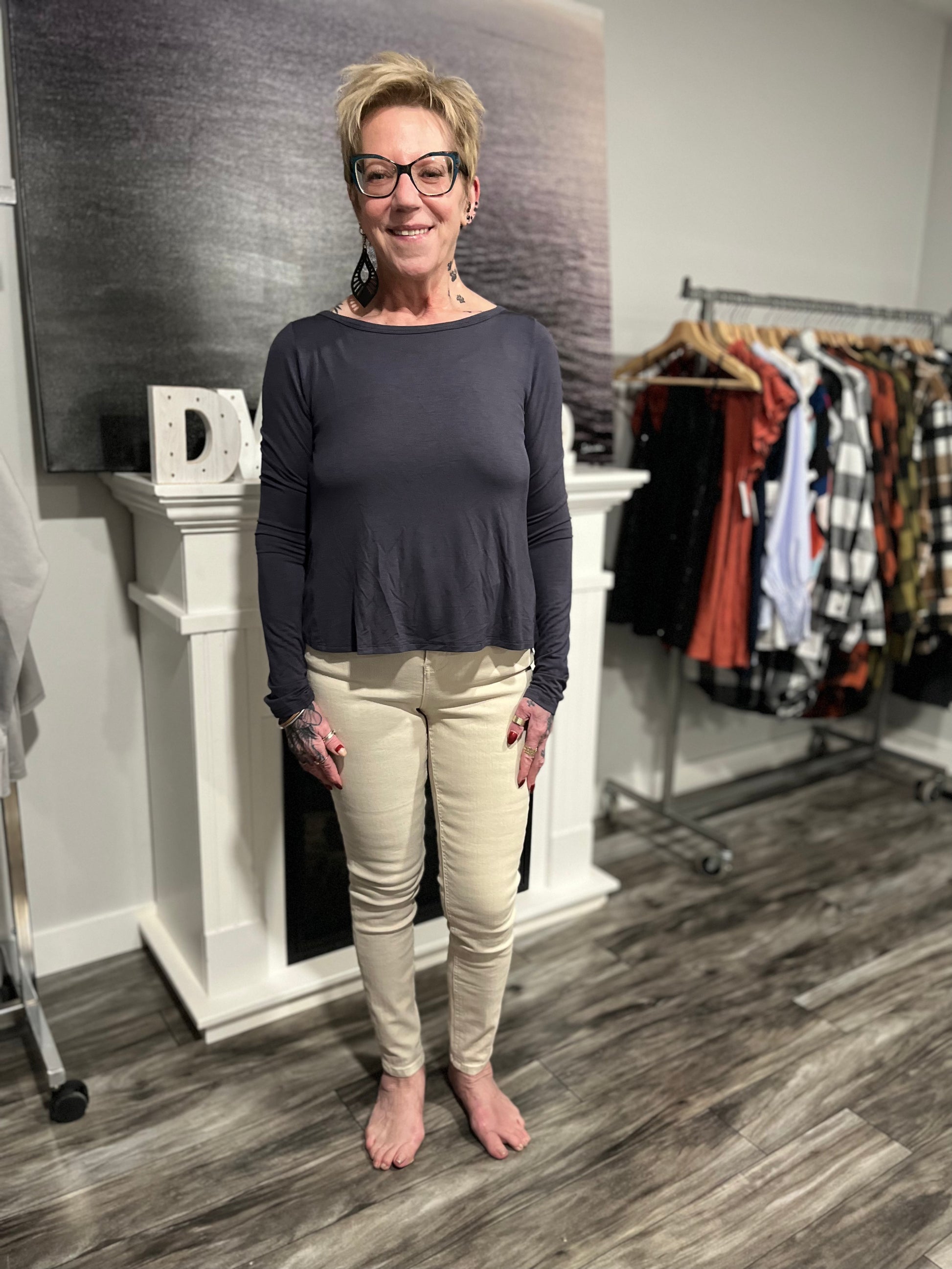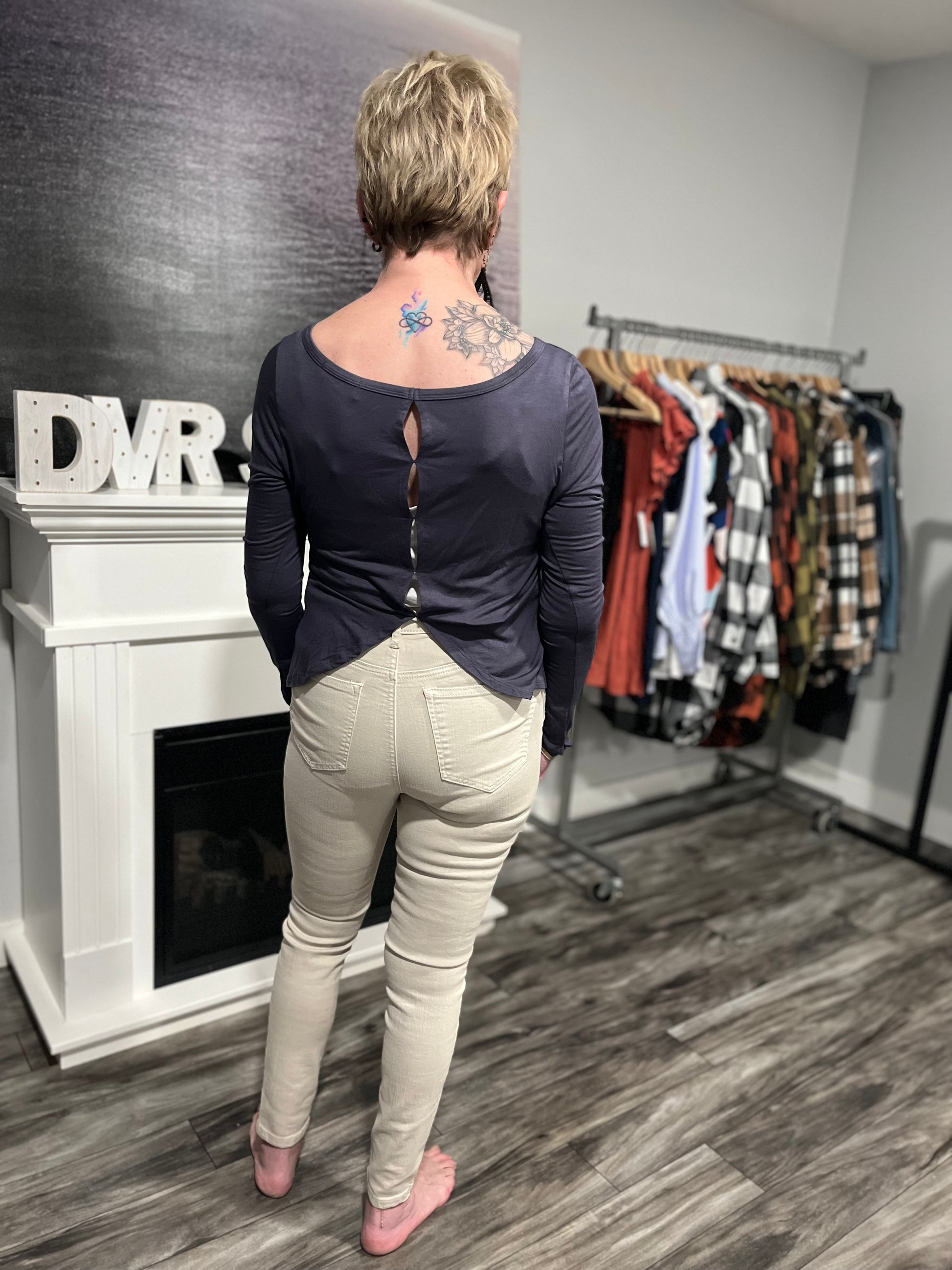 The prefect softest long sleeve yoga top. This top is unique with its cutouts in the back. Wear it with any of our leggings to the gym or layer it and dress it up.