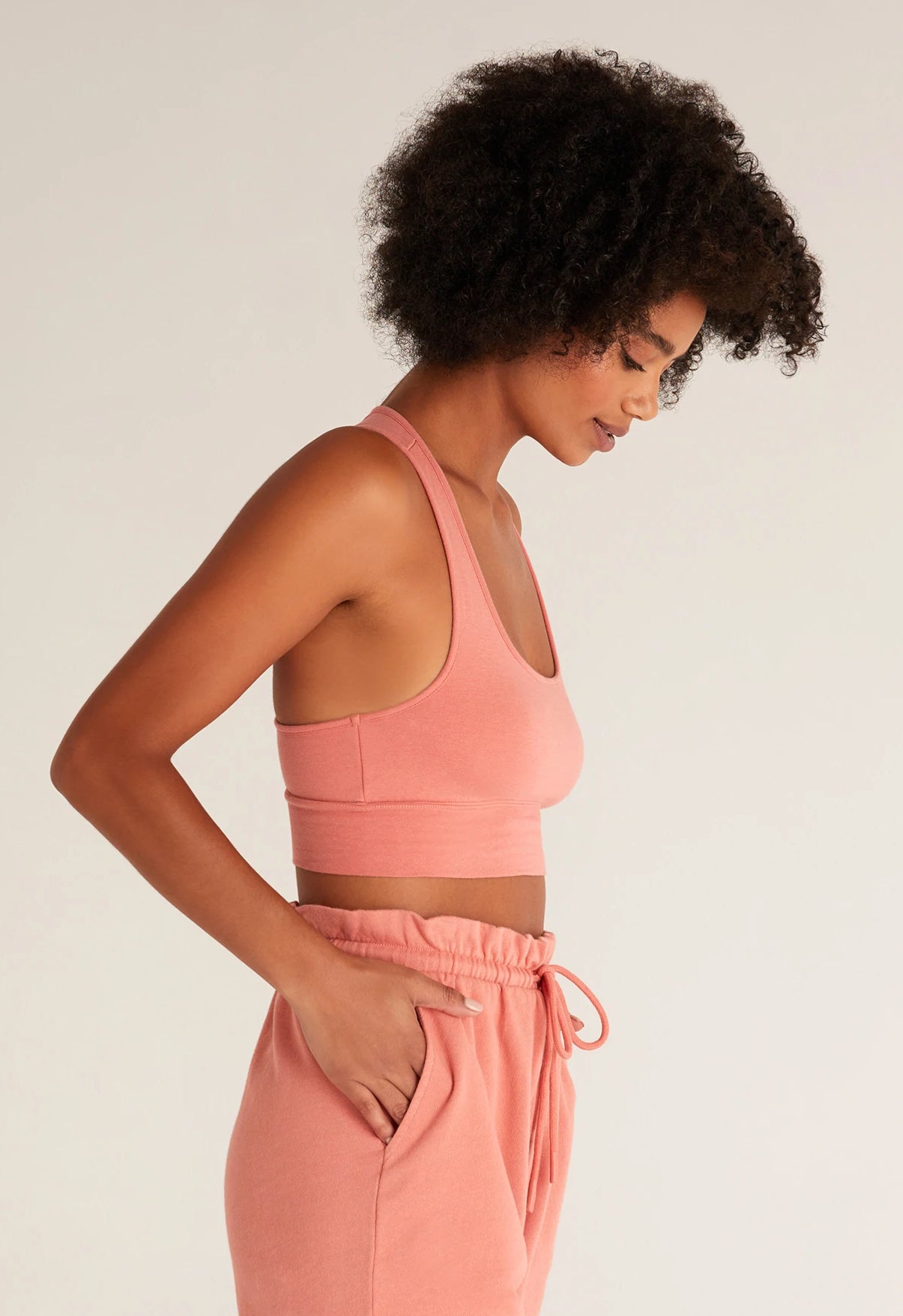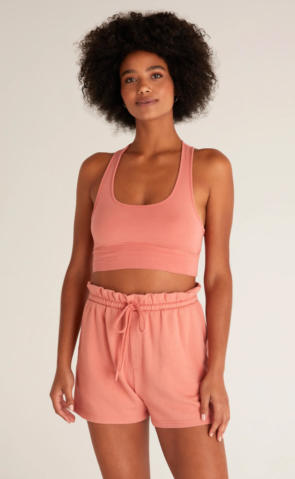 The Sia Tank! A Cotton spandex jersey knit fabric which is soft and gives this fitted tank that comfy appeal. The thicker straps and wider band with elastin give this bralette moderate support.