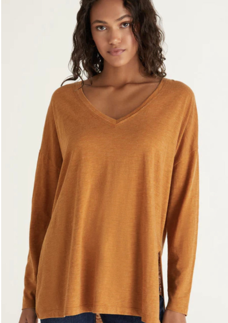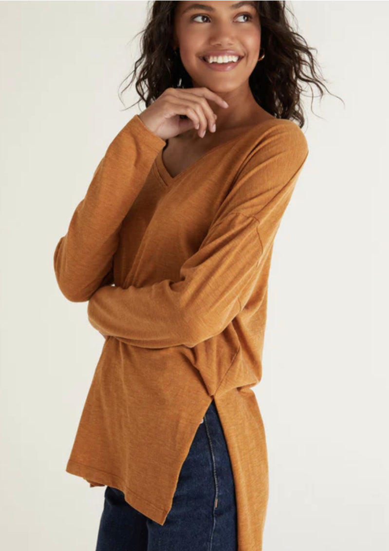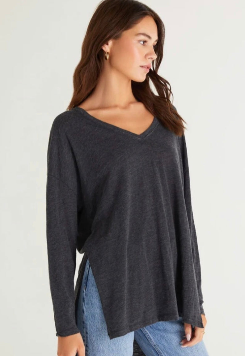 The Super Chill Long Sleeve Tee is perfect for those cool days and chilly nights. This style is relaxed and long enough to wear over leggings or denim with the side slit details.